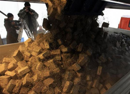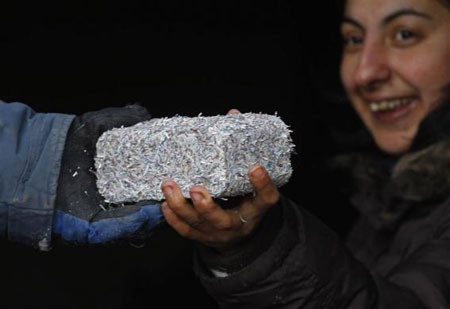 ក្រដាសប្រាក់ត្រូវបានកាត់ និងកៀបជាដុំ ដើម្បីដុតកំដៅក្នុងពេលរងា។