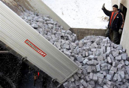 ក្រដាសប្រាក់ចំនួន ៤ តោនត្រូវបានកាត់កំទេច និងកៀបជាដុំ ដាក់នៅលើរថយន្ដ