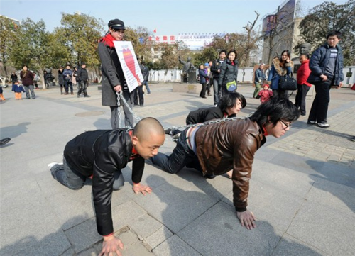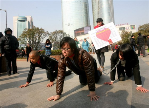 តាមប្រភពព័ត៌មានពីគេហទំព័រ Chinabuzz បានឲ្យដឹងថា នារីនិងបុរស៤នាក់នេះសុទ្ធតែ ជាអ្នកសិល្បៈទាំងអស់។ ដូច្នេះ ការដាក់ច្រវាក់ និងលូនតាមដងផ្លូវបែបនេះ ហាក់ដូចជាការសម្តែងសិល្បៈតែប៉ុណ្ណោះ ដែលមានចំណង់ជើងថា រក្សាសិលធម៌របស់ខ្លួន ដើម្បី