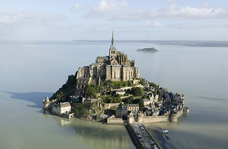 វិមាន Mont Saint-Michel មានទីតាំងស្ថិតនៅលើកោះមួយមានរាងជាសាជី និងកសាងឡើង