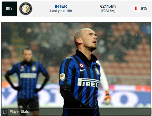 8. Inter ឆ្នាំ 2010-11 ទទួលបានប្រាក់ចំណូល � 211.4 million ស្មើនឹង 6% បើធៀបទៅនឹង ឆ្នាំ 2009-10 គឺមានការថយចុះ។