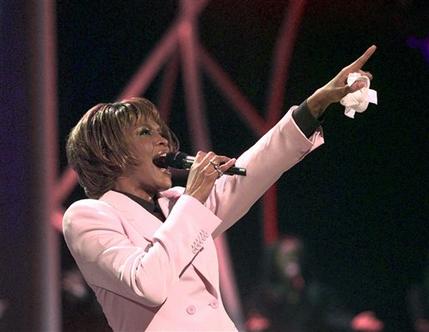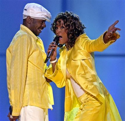 Whitney Houston (ខាងឆ្វេង) និង Jermaine Jackson ច្រៀងជាមួយគ្នាក្នុងរាត្រីប្រគំតន្រ្តី