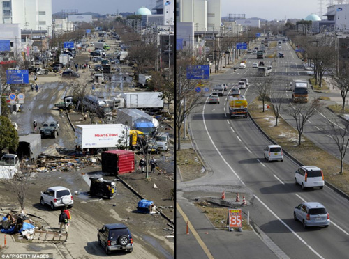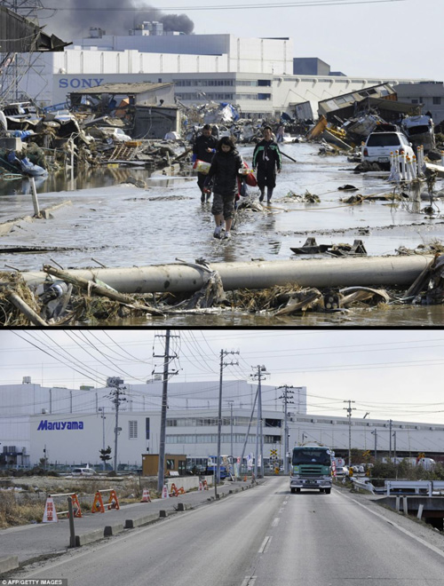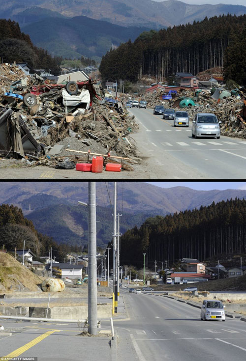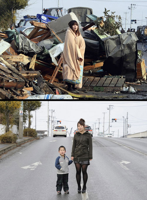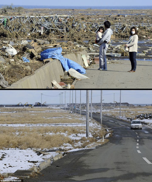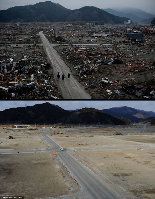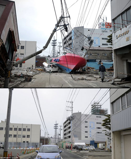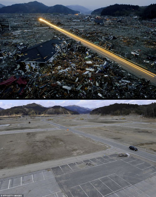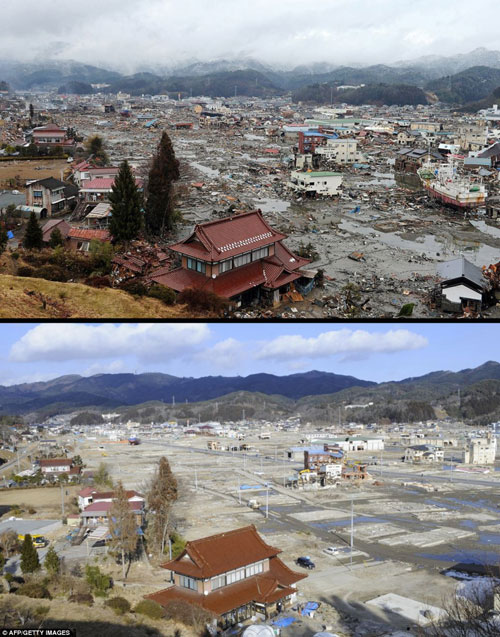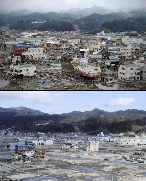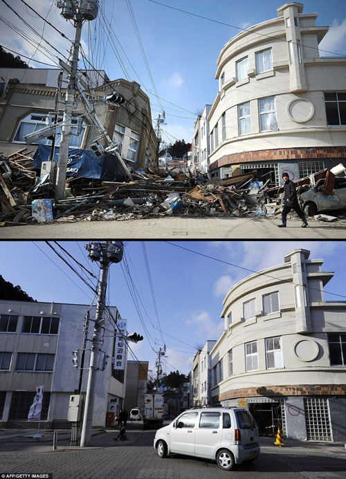ក្រុង Minamisoma ក្នុងខេត្ត Fukushima កាលពីមួយឆ្នាំមុន(រូបខាងលើ)