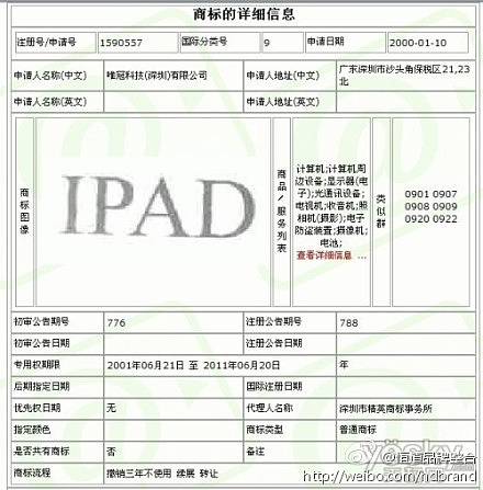 នេះបានល្មើសលើផ្លាកយីហោជាកម្មសិទ្ធរបស់ខ្លួនមានឈ្មោះហៅថា iPad ហើយដែលត្រូវ