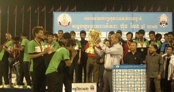 កាលពីថ្ងៃអាទិត្យទី 12 ខែ កុម្ភៈ ឆ្នាំ 2012 កន្លងទៅនេះ នៅឯពហុកីឡាដ្ឋាន ជាតិអូឡាំពិក មានការប្រកួតបាល់ទាត់ដណ្តើមពានរង្វាន់បាល់ទាត់ សម្តេចតេជោ ហ៊ុនសែន ឆ្នាំ 2012 ដែលមានក្រុម ព្រះខ័នរាជ្យ ជាមួយនឹង ក្រុមណាហ្គាខប។ នៅថ្ងៃនោះដែរក៏មាន ការចូលរួមពីសំណាក់ប្រិយមិត្តស្នេហាវិស័្សយបាល់ទាត់ យ៉ាងច្រើនកុះករផងដែរ។ នៅវគ្គទី1 ណាហ្គាខប និងព្រះខ័នរាជ្យរកគ្រាប់បាល់បាន 1 ទល់នឹង 1។ ចូលដល់វគ្គទី2 ក្រុមទាំង2 ខិតខំសម្រុក ប៉ុន្តែដោយសារតែម្ខាងៗសុទ្ធតែជាជើងខ្លាំង ចប់វគ្គទី2 នៅតែ 1 ទល់នឹង 1 ដដែល។ អាជ្ញាកណ្តាល បានបន្ថែមម៉ោង 15នាទី ការជិតនឹងចប់ទៅហើយ ក្រុមព្រះខ័រាជ្យ មានឱកាសស៊ុតបញ្ចូលគ្រាប់បាន1 គ្រាប់ធ្វើអោយ ក្រុមព្រះខ័នរាជ្យក្លាយទៅជាម្ចាស់ ពានរង្វាន់បាល់ទាត់សម្តេចតេជោ ហ៊ុនសែន ឆ្នាំ 2012។