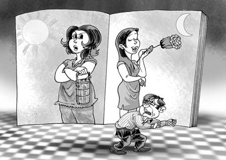 ២/ ប្រពន្ធនាំយើងទៅផ្ទះពុកម្ដាយ ឯសង្សារចង់នាំយើងទៅផ្សារទំនើប។