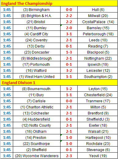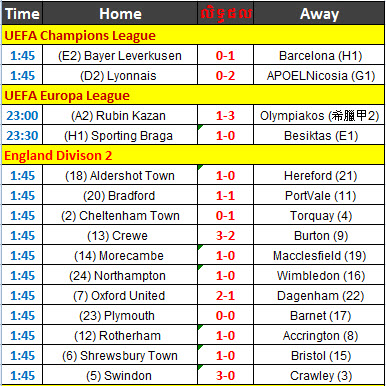 តារាងលទ្ធផលបាល់ទាត់ថ្ងៃទី 14-02-2012