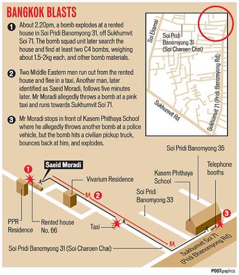 សេចក្ដីលំអិតនៃករណីផ្ទុះគ្រាប់បែកនៅភាគខាងកើតក្រុងបាងកក និងនៅខាងក្រៅតំបន់