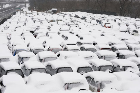 ទីលានចតរថយន្ដនៅ Mercogliano ប្រទេសអ៊ីតាលី ត្រូវគ្របដោយព្រិល។