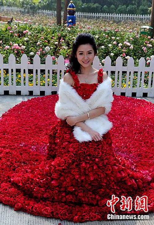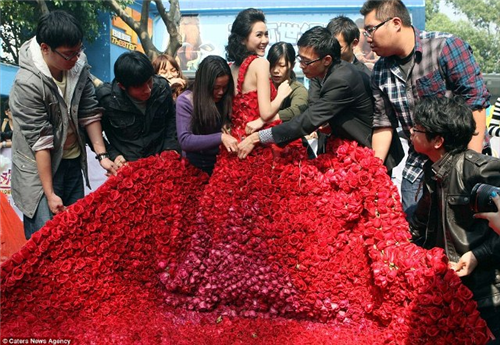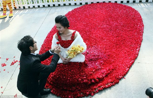 របស់ខ្លួនដោយជូនរ៉ូបដែលធ្វើឡើងពីផ្កាកុលាបចំនួន ៩.៩៩៩ទងទៅអោយនារីនោះ។
