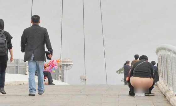 តែមានភ្ញៀវទេសចរណ៏មួយរូបបានអង្គុយនោមនៅលើស្ពានមួយនេះ។ អ្នកធើ្វដំនើរ