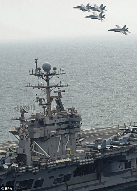 Lincoln របស់អាមេរិកដែលការពារដោយនាវាចម្បាំង USS Cape St. George និង USS Sterett