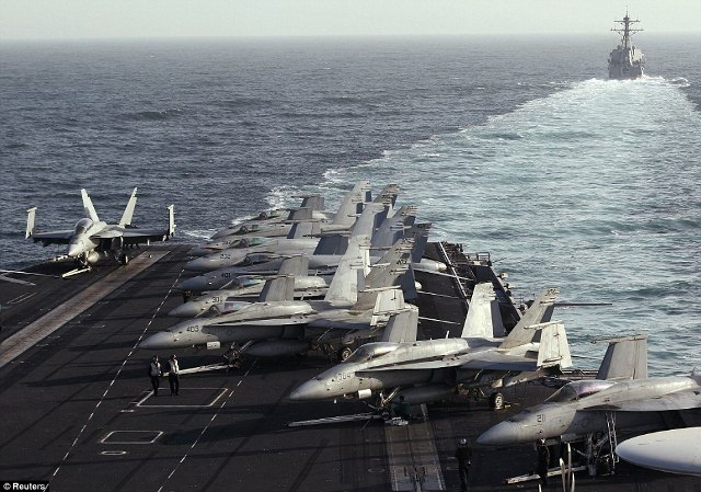 នាវាត្រួតពិនិត្យសមុទ្រ និងយន្ដហោះរបស់អ៊ីរ៉ង់បានឡោមព័ទ្ធនាវាដឹកយន្ដហោះ Abraham