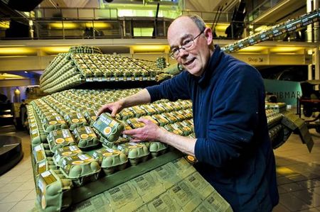 សិល្បករចម្លាក់ជនជាតិអង់គ្លេសរូបនេះ បានប្រើប្រាស់ប្រអប់ក្រដាសកាតុងដាក់ស៊ុត ចំនួន