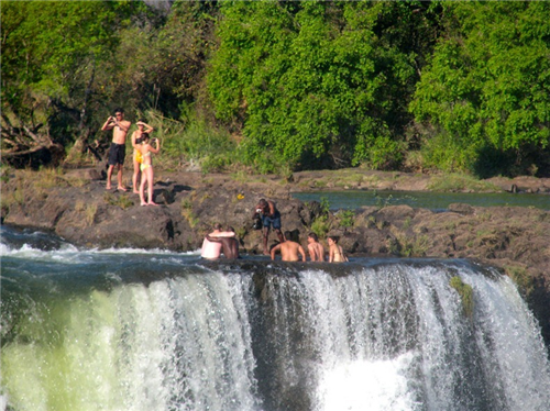 Zambezi ដែលជាព្រំប្រទល់រវាង Zambia និង Zimbabwe។ នៅរដូវប្រំាងតំបន់នេះអាច