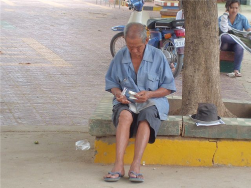 លោកតាម្នាក់នេះកំពុងរាប់លុយក្រោយពីដើរសូមទាន