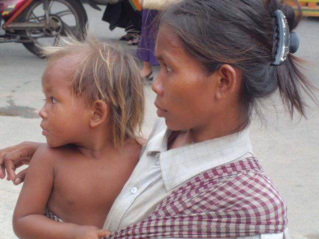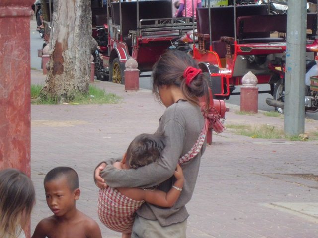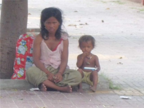 ស្ដ្រីមួយចំនួន បីកូនតូចដើរតាមសូមទានភ្ញៀវទេសចរណ៍បរទេស ខ្លះក៏ត្រូវគេដាក់ទាន ខ្លះ