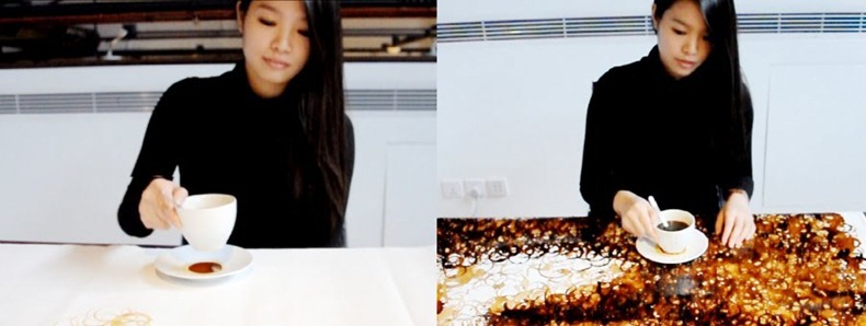 ខាងក្រោមនេះគឺជាការឆ្នៃប្រឌិតមួយដែលជាគំនិតរបស់កញ្ញា Hong Yi ជាវិចិត្រករជនជាតិម៉ាឡេស៊ីដែលប្រើប្រាស់កាហ្វេនិងពែងកាហ្វេបង្កើតបានជាគំនូរយ៉ាងស្រស់ស្អាត។