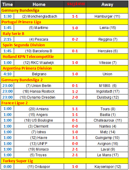 ខាងក្រោមនេះតារាងលទ្ធផល