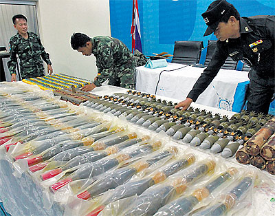 ថៃ។ ក្នុងនោះប៉ូលីសបានរកឃើញគ្រាប់ផ្លោង ប្រភេទRPG ចំនួន៣៦ដើម, កំាភ្លើងបាញ់