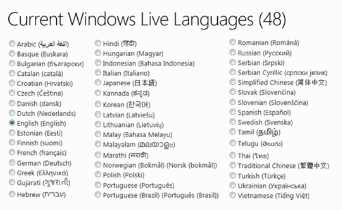 Windows Live បច្ចុប្បន្នស្គាល់បាន ៤៨ ភាសា, ដោយឡែកកំណែថ្មីដែលនឹងត្រូវបង្ហាញវត្ត