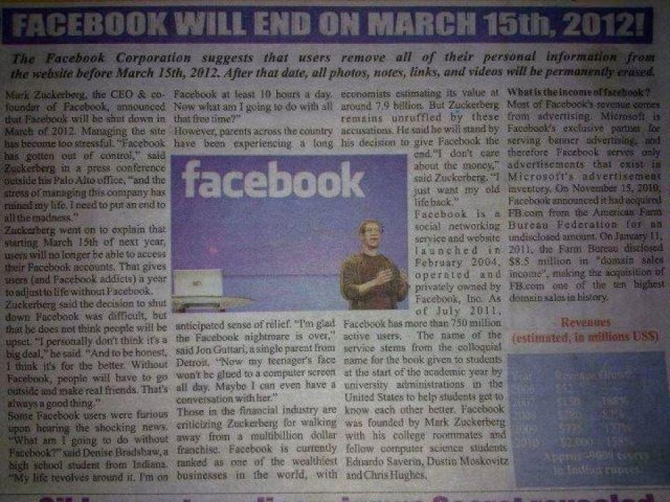 ចាប់ពីថ្ងៃទី ១៥ ខែមិនា ឆ្នាំ២០១២នេះ អ្នកប្រើប្រាស់ និងមិនអាចប្រើគណនី Facebook