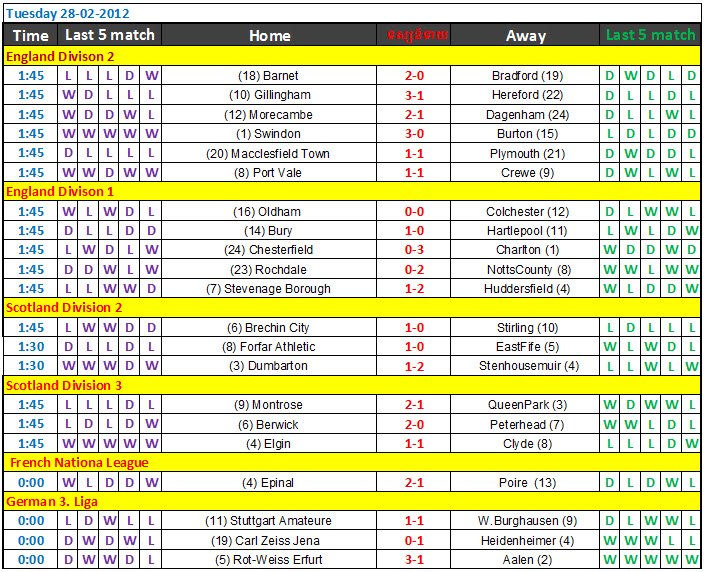 សំរាប់គូប្រកួតបន្ថែមទៀតសូមមើលតារាងខាងក្រោមនេះ៖