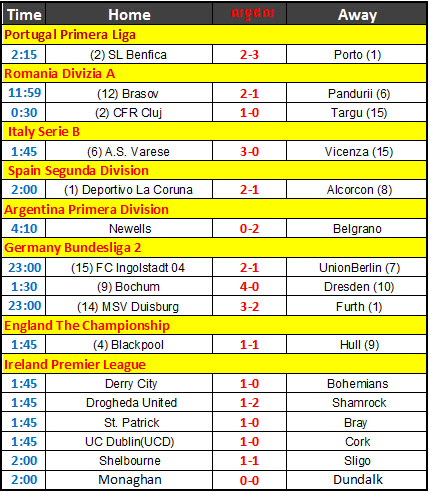 តារាងលទ្ធផលបាល់ទាត់ ២៥ មិនា ២០១៣