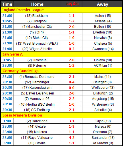 តារាងលទ្ធផលបាត់ទាត់សំរាប់ថ្ងៃទី ១៨ មិនា ២០១៣