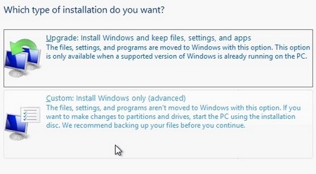 only (advanced)� នៅខាងក្រោម ដើម្បីដំឡើង Windows 8 ស្របជាមួយគ្នានឹងប្រព័ន្ធប្រតិ