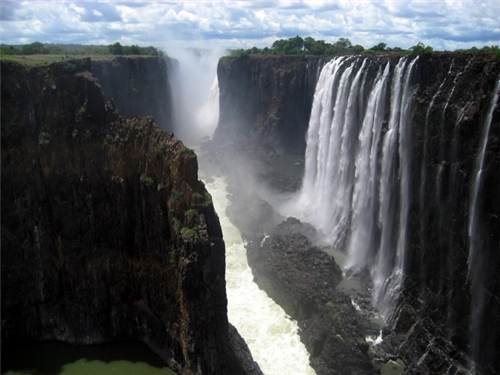 ទឹកធ្លាក់ Victoria រឺអាចហៅបានម្យ៉ាងទៀតថា Mosi-oa-Tunya មានទីតាំងស្ថិតនៅលើច្រាំង