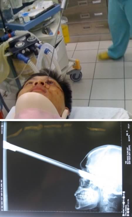 ២.បុរសម្នាក់ដែលនៅរស់ក្រោយពេលរងគ្រោះថ្នាក់ជាប់ដាវជាមួយនឹងភ្នែករបស់ខ្លួន
