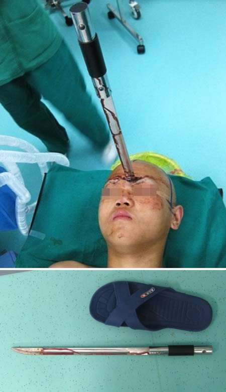 Zhang Bin ក្មេងប្រុសអាយុ១៥ឆ្នាំដែលបានជួបឧបទ្ទវហេតុត្រូវដាវដ៏មុតស្រួចចាក់ចូលចំ