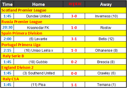 តារាងលទ្ធផលបាល់ទាត់ថ្ងៃទី 05-03-2012