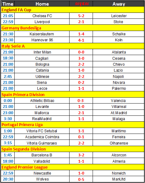 តារាងលទ្ធផលបាល់ទាត់សំរាប់ថ្ងៃទី ២២ មិនា ២០១៣
