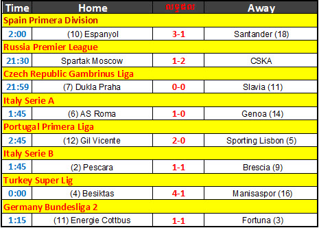 តារាងលទ្ធផលបាល់ទាត់សំរាប់ថ្ងៃទី ២២ មិនា ២០១៣
