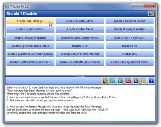 Task Manager, Registry Editor, Command Prompt, Folder Options, Control Panel,