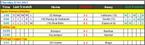 តារាងការប្រកួតបាល់ទាត់ថ្ងៃទី 22-03-2012