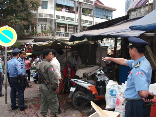 ដោយលើកយកសម្ភារដែលដាក់លើចិញ្ចើមថ្នល់យកទៅរក្សាទុករហូតដល់កិច្ចប្រជុំកំពូលចប់ ទើបប្រគល់ជូនវិញ។