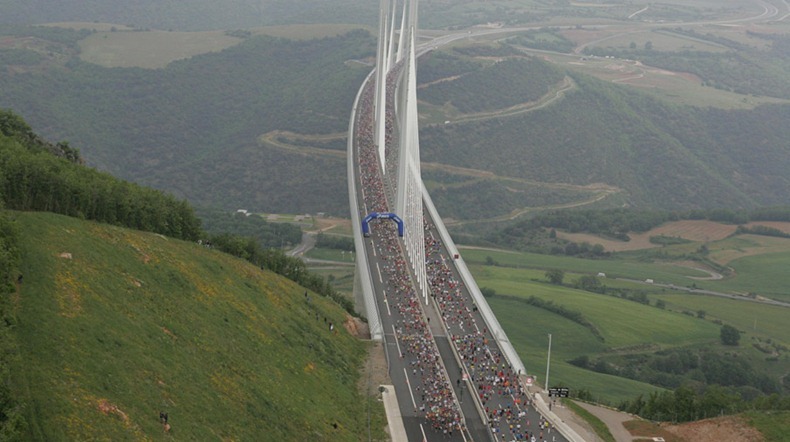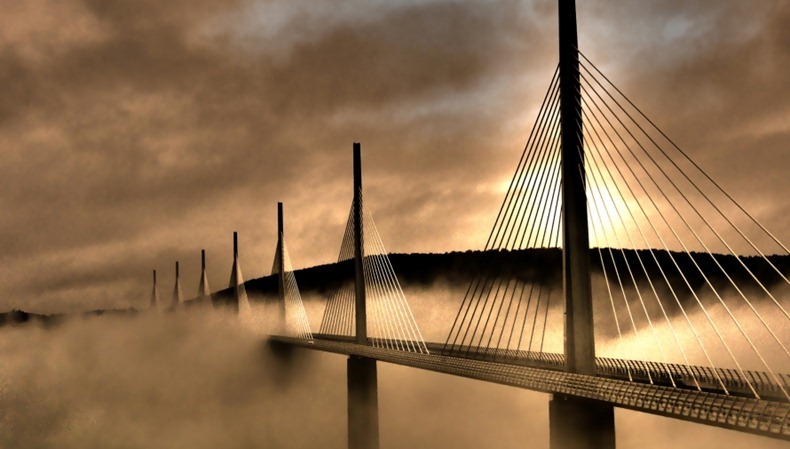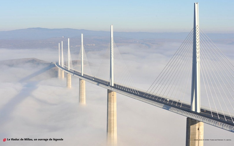 Millau Viaduct គឺជាស្ពានខ្សែកាបដែលមានកំពស់ខ្ពស់ជាងគេលើលោកដែលមាកំពស់រហូត