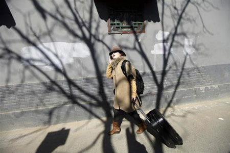 នាង Zhuang គេងនៅក្នុងសណ្ឋាគារបុរាណមួយក្នុងក្រុងប៉េកាំងកាលពីថ្ងៃទី ៦មិនា នេះគឺ