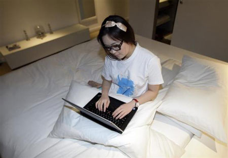 Zhuang ពិនិត្យគុណភាព wifi នៅក្នុងសណ្ឋាគារមួយនៅប៉េកាំង។