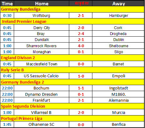 តារាងលទ្ធផលបាល់ទាត់ថ្ងៃទី 23-03-2012