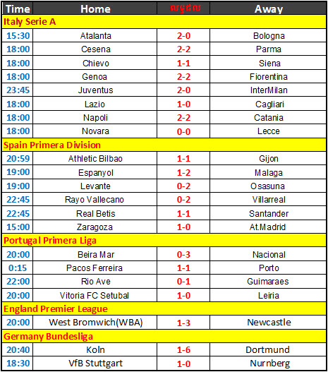 តារាងលទ្ធផលបាល់ទាត់ថ្ងៃទី 25-03-2012