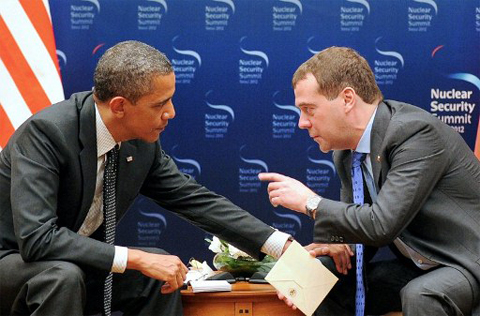 លោក Barack Obama និង ប្រធានាធិបតិរូស្ស៊ី លោក Dmitry Medvedev