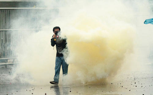 គ្រាប់បែកបង្ហូរទឹកភ្នែកត្រូវបានកងកម្លាំងនគរបាលប្រើប្រាស់ ដើម្បីបំបែកហ្វូងបាតុករ
