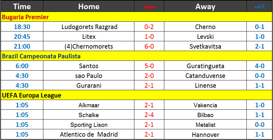 តារាងលទ្ធផលបាល់ទាត់សំរាប់ថ្ងៃទី 29-03-2012