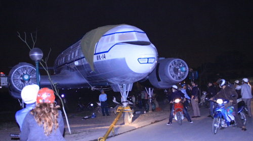យន្ដហោះនេះត្រូវបានសម្រេចអោយអូសឆ្លងកាត់ស្ពាន Vinh Tuy ដើម្បីយកទៅដាក់តាំង